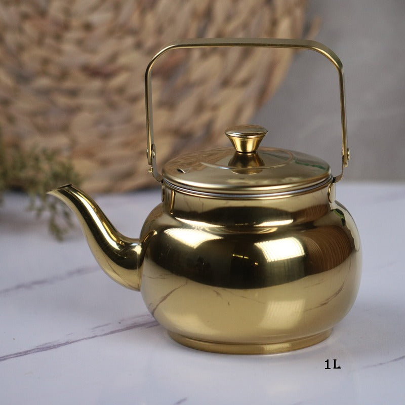 إبريق شاي ستانلس ستيل ذهبي عريض 1.0 لتر
