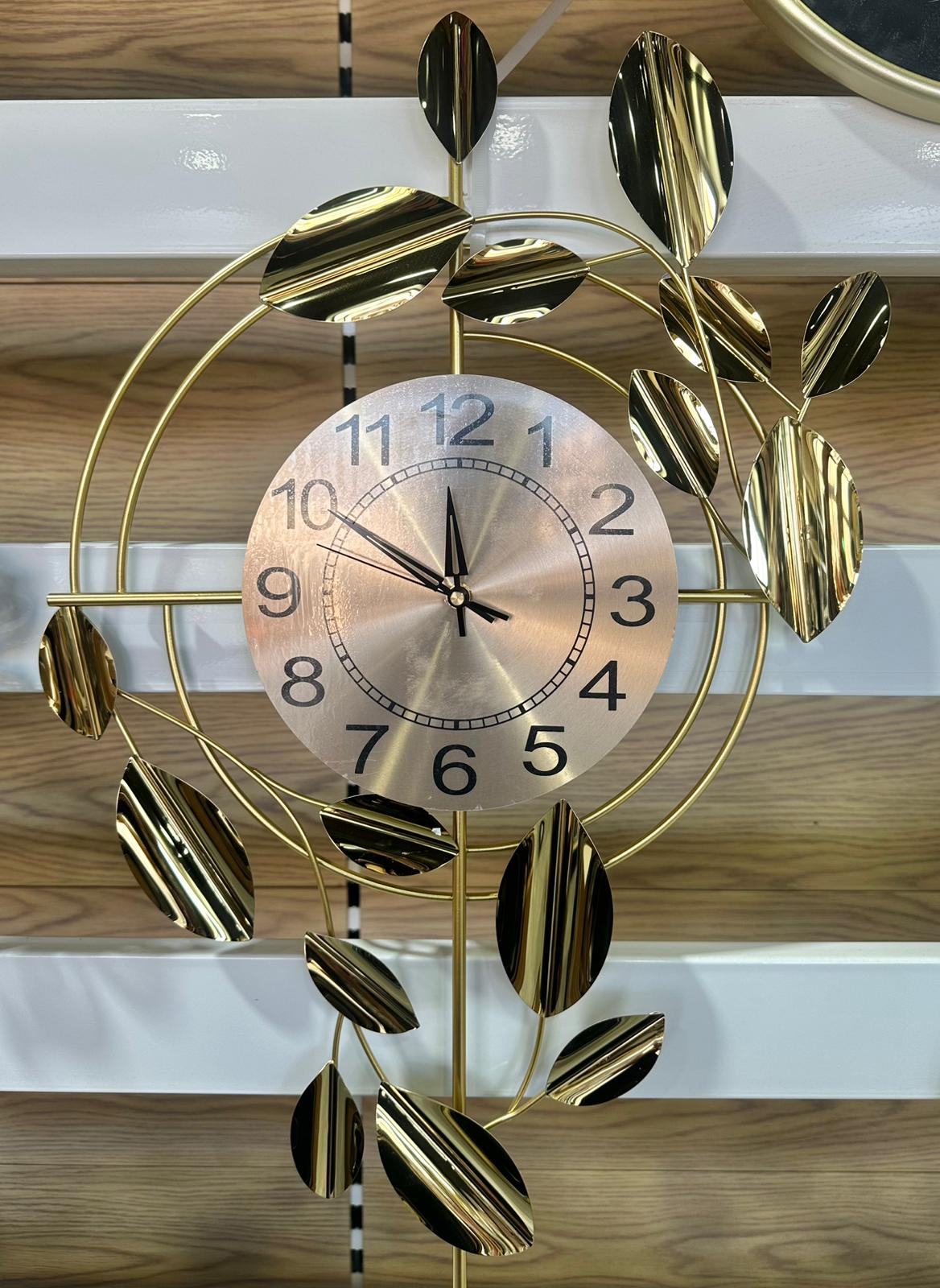 ساعة حائط معدنية بتصميم أوراق ذهبية 75*44*3 سم