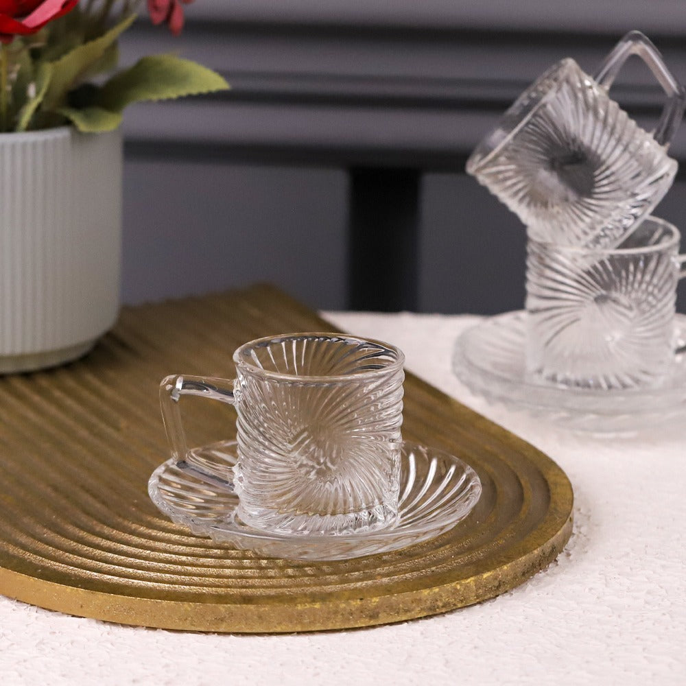 طقم فناجين قهوة زجاج شفاف مزخرف 6/6