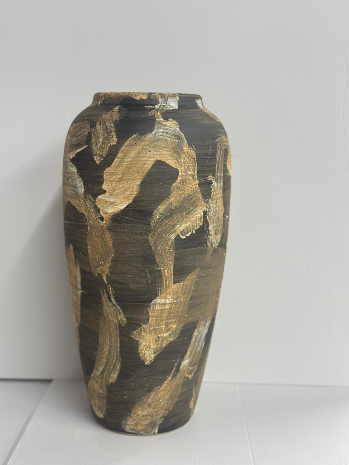 مزهرية سيراميك طويلة بنقشة يدوية حجم كبير