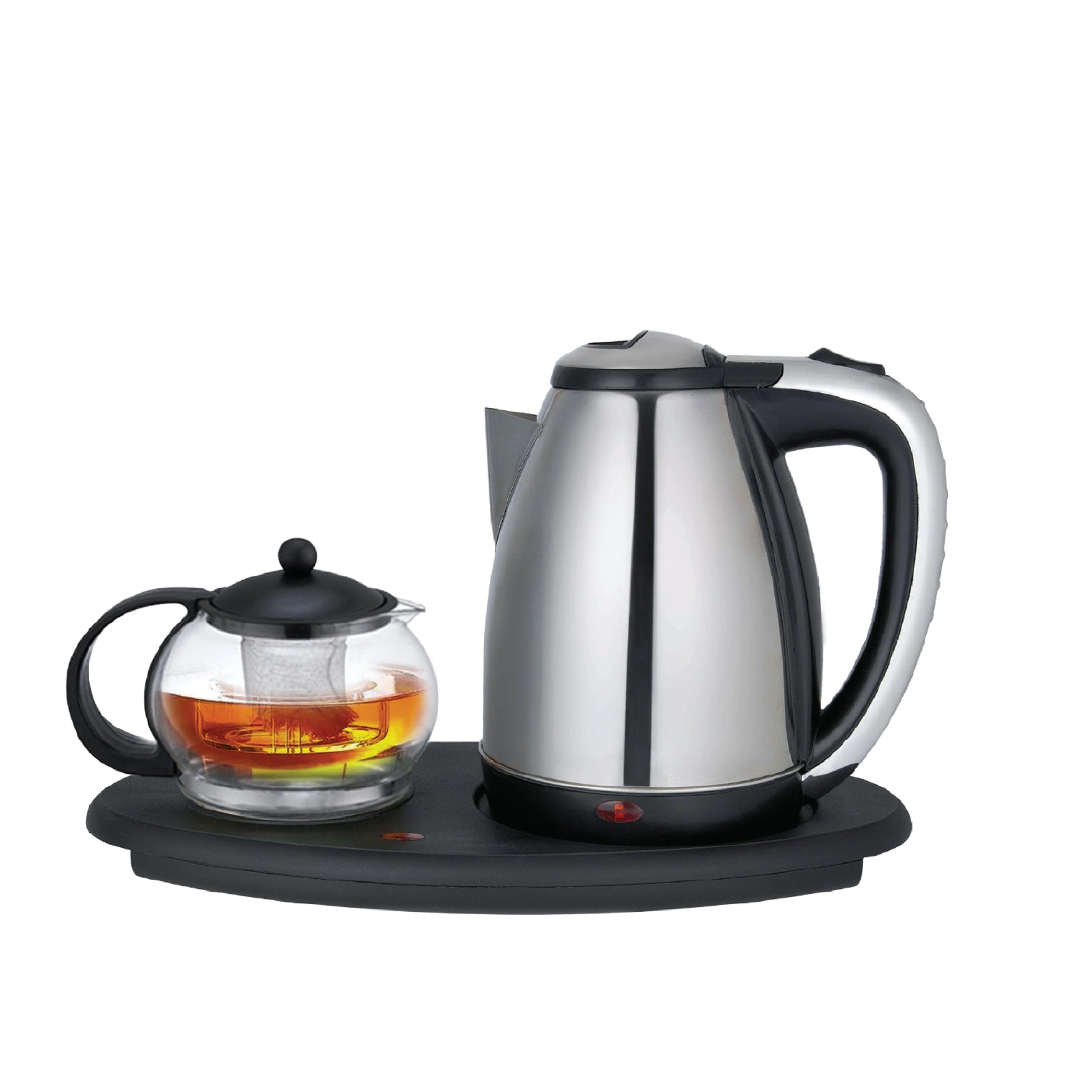 סט קומקום חימום חשמלי זכוכית ונירוסטה 1.8 ליטר עם קנקן בסיס פלסטיק שחור