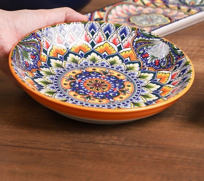 صحن طعام بورسلان مزخرف ملوّن دائري 8 إنش