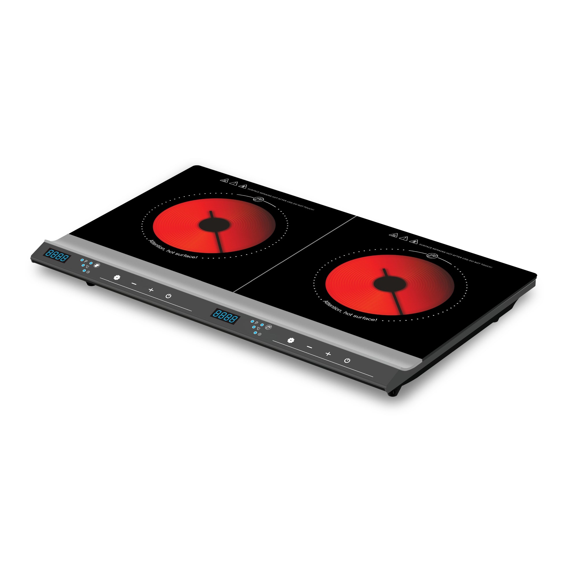 פלטת חימום כפולה דיגיטלית מזכוכית קרמיקה שחורה, 10 תוכניות.