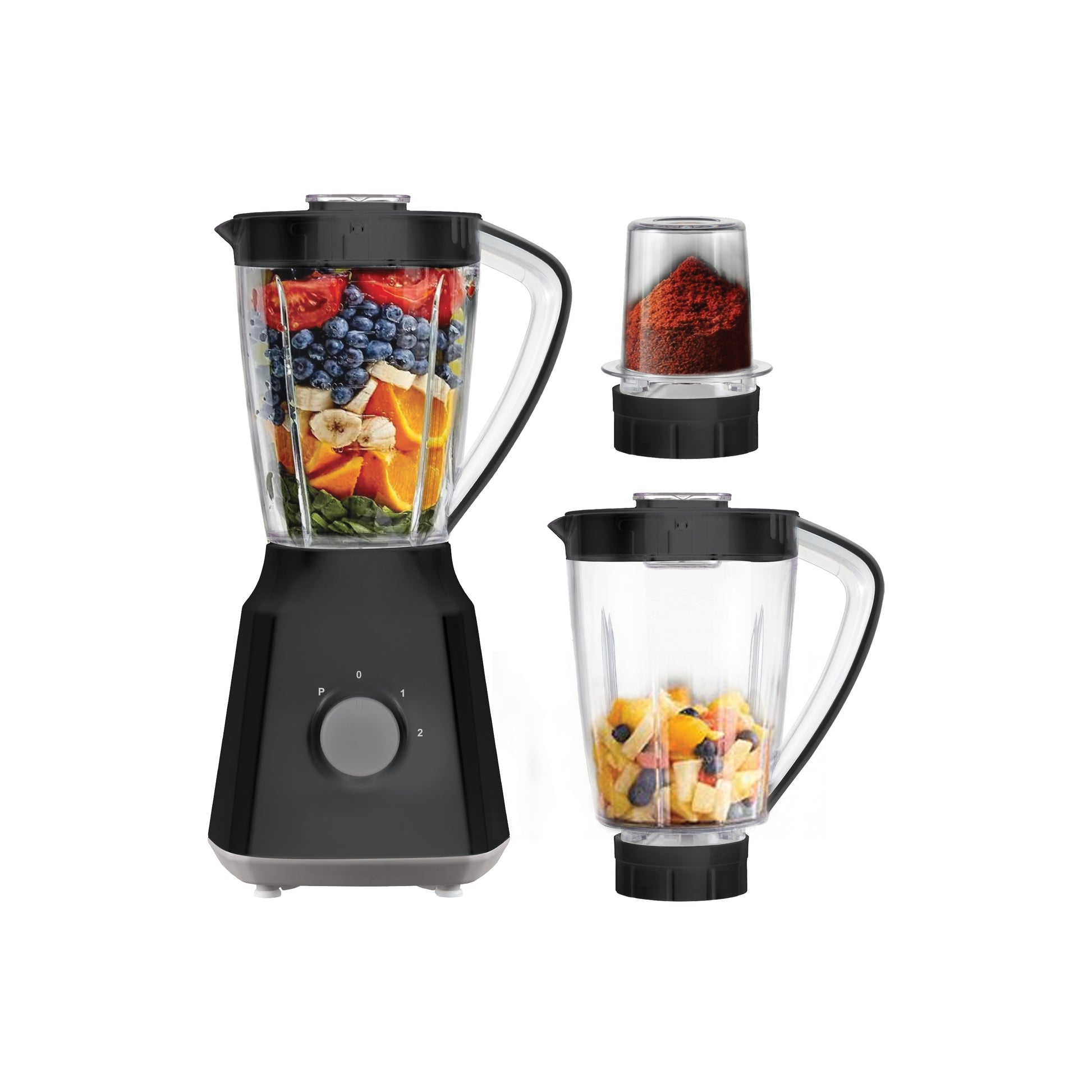 סט בלנדר שחור, קנקן פלסטיק 1.5 ליטר + מטחנה + קנקן בלנדר נוסף.