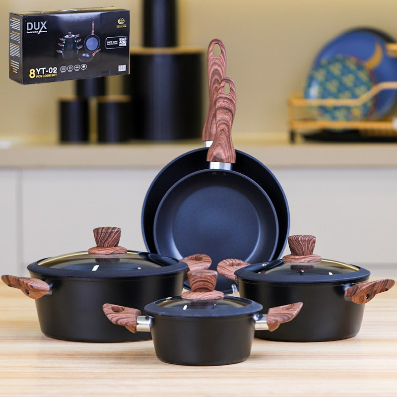 סט סירים 8 חלקים גרניט שחור ידיות בצבע חום