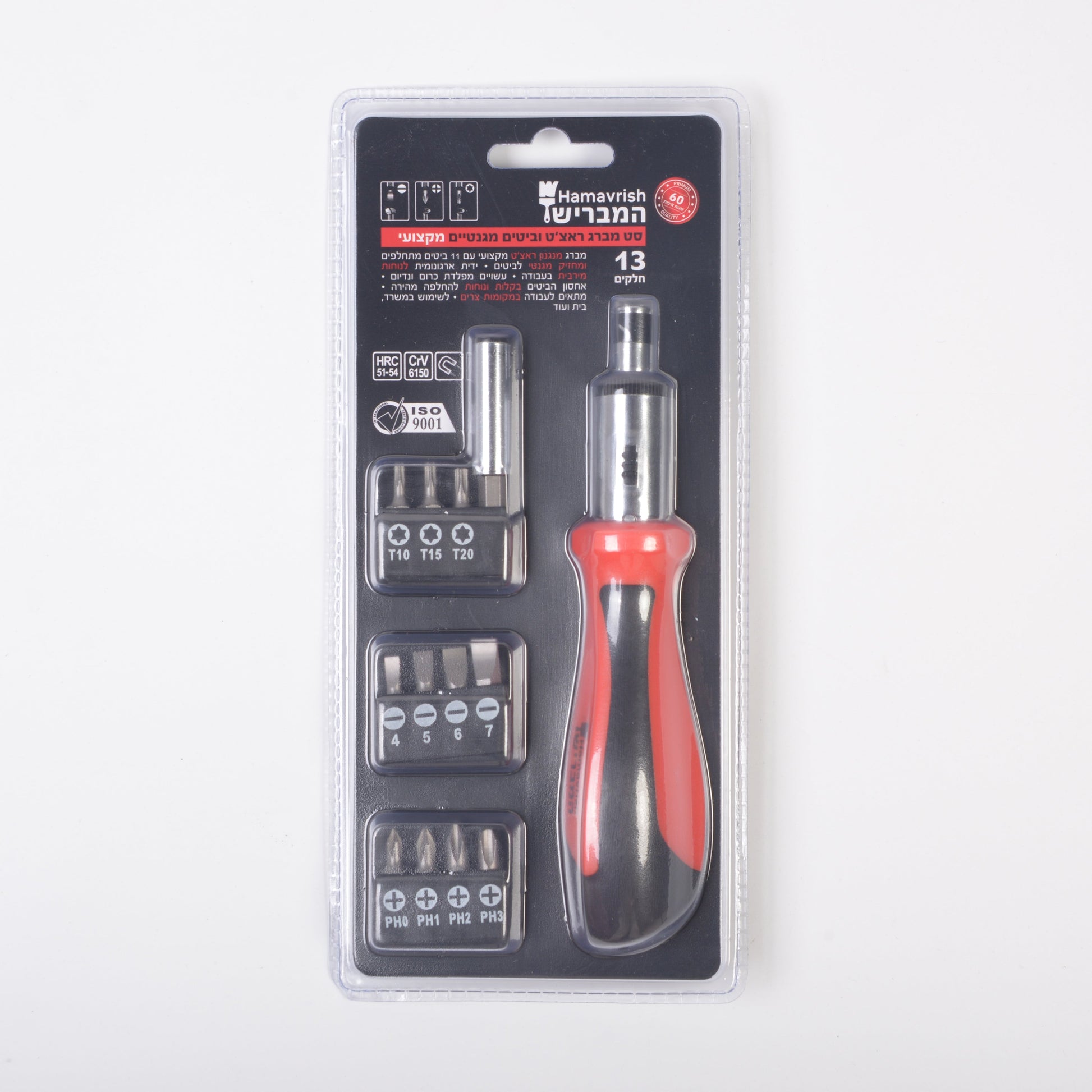 סט מברג ראצ’ט וביטים מגנטיים מקצועי 13 חלקים