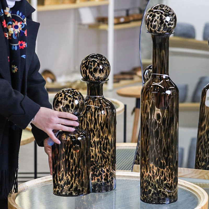 אגרטל זכוכית שקוף בצבע דבש ושחור עם מכסה כדורי 14X72 ס"מ