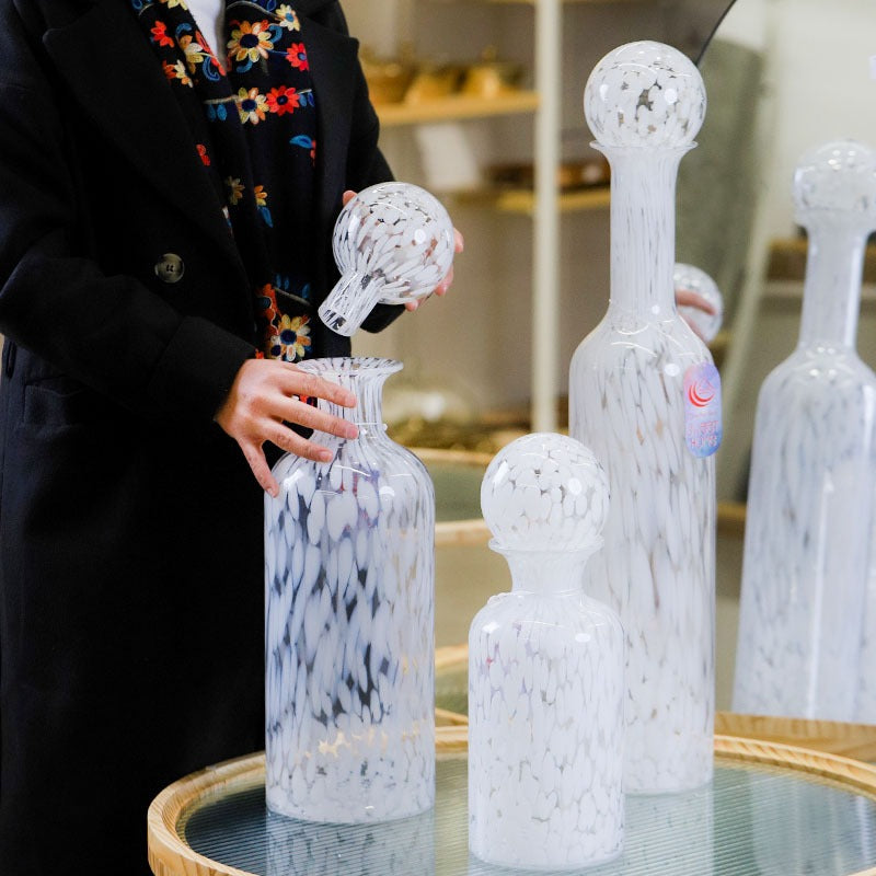 אגרטל זכוכית שקוף ולבן עם מכסה כדורי 14X72 ס"מ